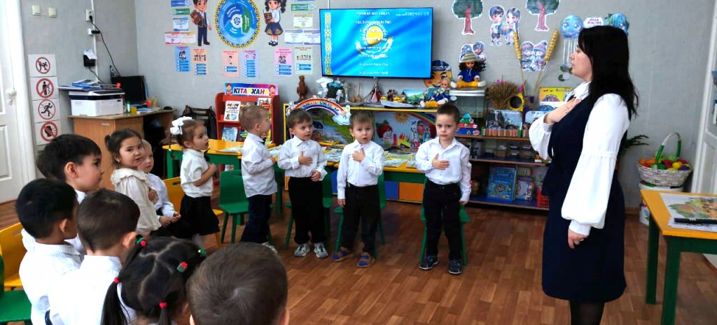 Балаларда, Отан — Қазақстан Республикасы туралы бастапқы түсініктерді қалыптастыру; елдің негізгі мемлекеттік рәміздерімен және бейнелерімен таныстыру; сөйлеу тілін, зейінін, ойлауын және қимыл-қозғалыс үйлесімділігін дамыту; орыс және қазақ тілдеріндегі...