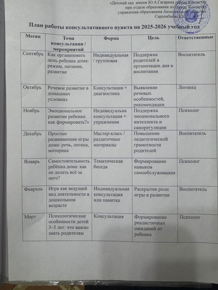 ГККП «Детский сад имени Ю.А.Гагарина» города Кокшетау при отделе образования по городу Кокшетау управления образования Акмолинской области»