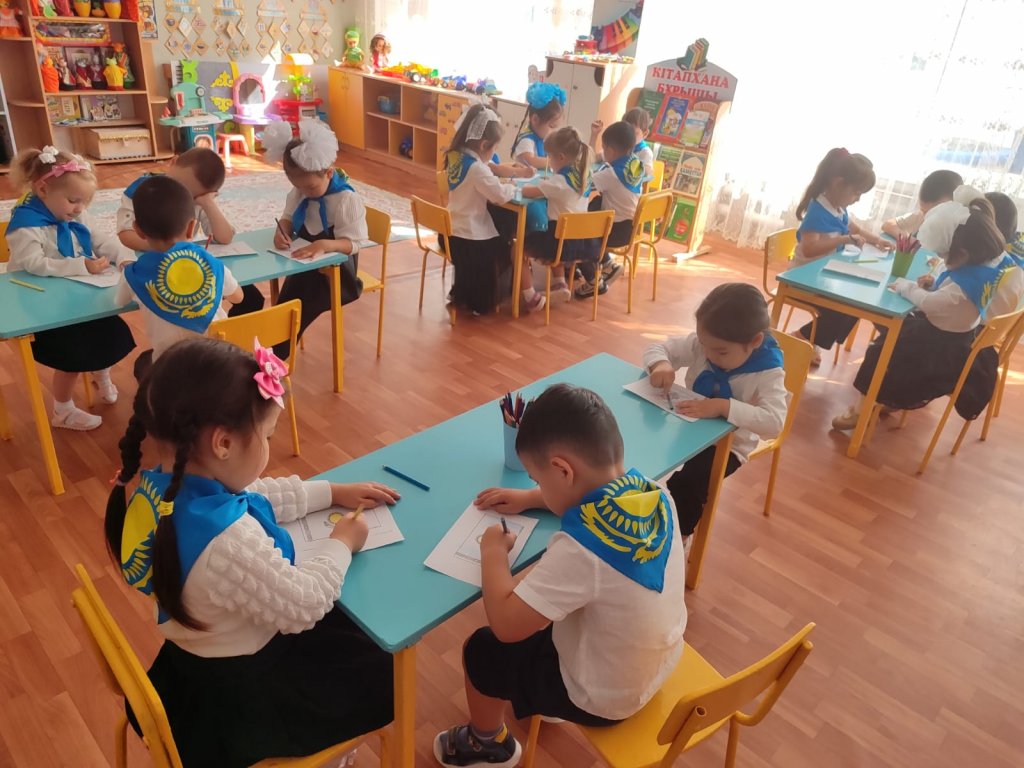 Мақсаты:Отан, Қазақстан, туған жер туралы түсініктерін кеңейту. Қазақстан Республикасының рәміздері туралы түсініктерін қалыптастыру.Балаларды Отансүйгіштікке, адамгершілікке, Отанына, халқына адал қызмет етуге, елінің Туын, Елтаңбасын, Әнұранын қастерлеуге, халқының тегін, тарихын білуге тәрбиелеу.