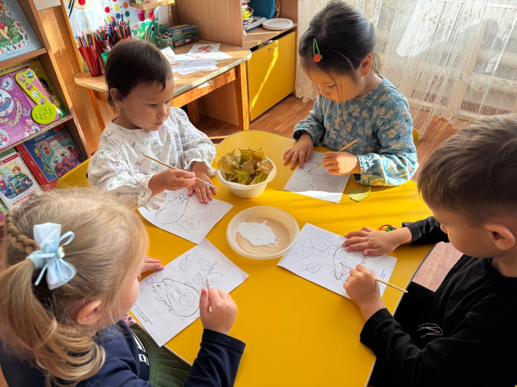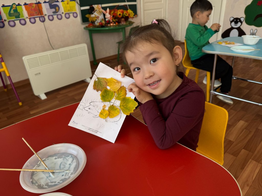 Балалардың шығармашылық қабілеттерін дамыту, күзгі табиғи материалдарды (жапырақтарды) қолдана отырып, кірпі бейнесін жасауға үйрету.