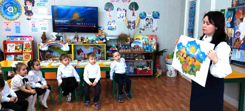Балаларда, Отан — Қазақстан Республикасы туралы бастапқы түсініктерді қалыптастыру; елдің негізгі мемлекеттік рәміздерімен және бейнелерімен таныстыру; сөйлеу тілін, зейінін, ойлауын және қимыл-қозғалыс үйлесімділігін дамыту; орыс және қазақ тілдеріндегі сөздік қорын байыту; өз еліне деген қызығушылық пен құрмет сезімін тәрбиелеу. Ойын түрінде балалар қимыл-қозғалыс және шығармашылық тапсырмаларды орындады, Айсұлу кейіпкерімен ойындарға қатысып, Қазақстанның рәміздерімен танысты. Тақырыптық іс-шара тәрбиеленушілердің танымдық қызығушылығын дамытуға және Отанға деген жағымды көзқарасын қалыптастыруға ықпал етті.